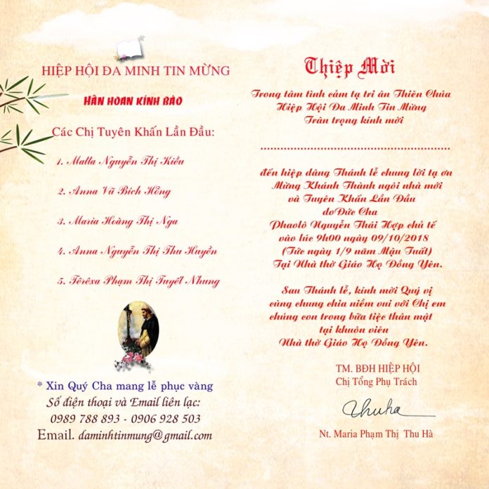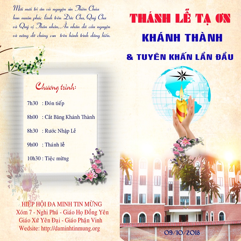Trang chủ » Tin tức » Giáo Hội Việt Nam » Hiệp hội Đa Minh Tin Mừng hân hoan mừng Lễ Khánh Thành ngôi nhà mới và hồng ân tuyên khấn lần đầu.Hiệp hội Đa Minh Tin Mừng hân hoan mừng Lễ Khánh Thành ngôi nhà mới và hồng ân tuyên khấn lần đầu. 460 lượt xem 4 Tháng 10, 2018 BTT