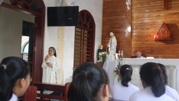 Nhớ lại lời chia sẻ của Đức Cha trong ngày trong ngày lễ Khánh thành ngôi nhà Trung ương và hồng ân tiên khấn 10/ 10/2018) rằng: “Các con thân mến, bài ca nhập lễ “Đẹp thay, ôi đẹp thay những bước chân gieo mầm cứu rỗi…” đã gợi nhớ hình ảnh tuyệt đẹp của sách ngôn sứ Isaia: “Đẹp thay trên đồi núi, bước chân người loan báo tin mừng, công bố bình an, loan tin hạnh phúc, công bố ơn cứu độ”. “Đẹp thay, ôi đẹp thay những bước chân rảo khắp nẻo đời”. Phải chăng đã đến lúc cần hiện đại hóa, cần biến những ý tưởng, những lời ca thánh thót đó thành hành động, thành quyết định dấn thân loan báo Tin Mừng? Phải chăng chính đôi chân bé nhỏ của các con sẽ là những bước chân rảo khắp nẻo đường đời, hòa nhập vào các lãnh vực của cuộc sống, len lỏi vào các môi trường xã hội … để gieo mầm cứu rỗi, để mở đường hiếu sinh?