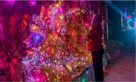 Thật bình dị, lãng mạn khi rải bước trong mọi ngõ ngách xứ đạo Thượng Lộc, tổ này nối tiếp tổ kia, hang đá này nhấp nháy tiếp hang đá nọ trang hoàng đèn màu lung linh, hoành tráng. Sự kì diệu đến độc đáo bởi cái tình cái nghĩa đậm đà đầy ắp, in sâu trong kí ức của con người nơi xứ đạo này đã được xây đắp từ bao đời. Thời gian cứ tích tắc nhích từng kim giây, đủng đỉnh nhích từng kim phút thế mà nó lại dệt cả một tấm màn lịch sử dài dằng dặc để rồi cứ đến mùa giáng sinh, nơi đây rộn ràng, rực rỡ, nhà nhà, người người từ lớn đến nhỏ cùng nhau làm hang đá, trang trí bóng đèn, dựng cây thông…. Cả ngôi làng với chiều dài tầm vài cây số nhưng dựng nên 30 hang đá mang nét đẹp riêng. Bên kia con đường cao tốc dòng người vội vã nhộn nhịp xe cộ, thế nhưng cảnh vật, con người nơi đây ẩn chứa điều gì khó tả, họ an nhiên tự tại cảm nhận khoảnh khắc bình yên của cuộc sống. Giáng sinh gõ cửa từng ngôi nhà, khơi lên sức sống mạnh mẽ của một xứ đạo, mọi người đều nhiệt tình hào hứng chào đón Giáng sinh không chỉ trong căn nhà ấm áp của mình mà lan tỏa trên mọi ngõ ngách đường làng. Ánh lừa bập bùng, niềm vui thánh thiêng khi mỗi tổ liên gia quây quần trước hang đá, cùng nhau sưởi ấm, nướng củ khoai, bắp ngô, chuyện trò thân thiết, đầm ấm bên bếp lửa hồng đỏ rực. Thánh thiêng hơn cả khi nghe tiếng râm ran lời kinh mân côi vang lên, lời hát đêm đông với bàn tình ca du dương, cao vút,… làm rộn rã cả bầu trời xứ đạo. Đèn nháy thi nhau lóe sáng trang điểm cho hang đá, vẻ huyền nhiệm từ hang đá cùng vui đùa lan tỏa làm nên bầu khí giáng sinh với muôn ngàn tia sáng mới.