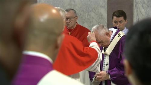 Sau bài giảng, Đức Thánh Cha là người đầu tiên nhận tro từ tay của Đức Hồng y Jozef Tomko, giám quản Vương cung Thánh đường này. Sau đó, Đức Thánh Cha Phanxicô xức tro cho những thành viên khác của Giáo triều, những người cùng sống với ngài.
