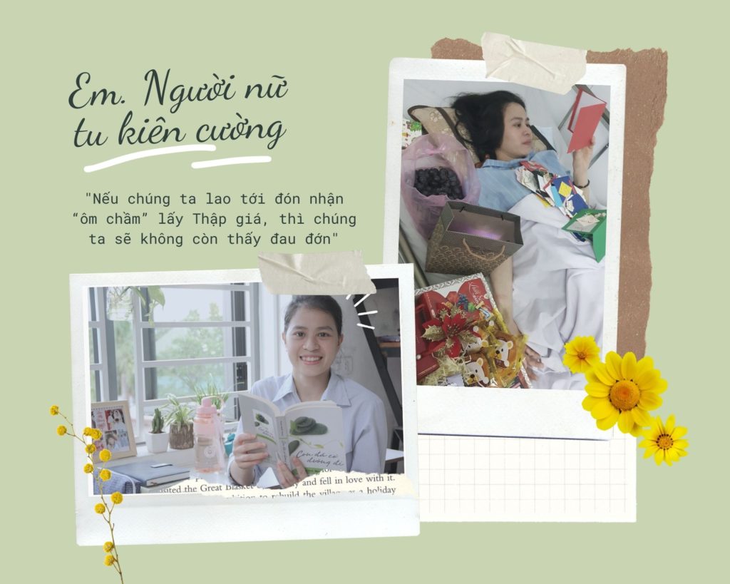 Nhắc đến các bệnh nhân thì dài lắm, tôi kể với em sau, còn hôm nay tôi muốn nhìn đến em, một người đã khiến tôi suy nghĩ khá nhiều và đã tiếp thêm sức mạnh cho tôi trong từng biến cố. Dù em đau thấu tận xương tủy nhưng nụ cười trên môi em chưa khi nào tắt mỗi lần gặp người khác, em vẫn có thể đùa nghịch trên câu chữ, tỏ ra một con người mạnh mẽ và can đảm, nhưng cái tôi nhìn tận sâu thẳm nhất đó chính là đức tin, đức cậy và đức mến kiên vững của em. Tôi thật sự khen em về nghị lực ấy, điều đó không hề dễ khi ở trong cuộc. Tạ ơn Chúa.