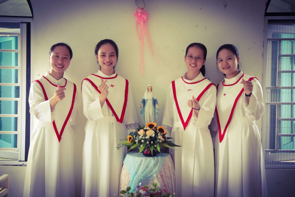 Ngồi trước sự hiện diện của Chúa Giêsu Thánh Thể, tâm hồn trầm lắng, lặng lẽ ngắm nhìn Giêsu giang tay trên Thánh Giá, đôi mắt nó ngấn lệ. Nó thấy tủi thân, nhớ về gia đình, nhớ những người thân yêu, nó muốn được chạy về lao vào vòng tay ấm áp của bố mẹ. Thế nhưng, tình yêu dâng hiến lại thôi thúc nó một lần nữa gạt đi nước mắt lăn dài trên gò má, bình tĩnh, hít một hơi thật sâu và mỉm cười với Chúa, như một giao ước theo Chúa đến cùng. Dù chông gai phủ đầy đường đi, nó vẫn thấy mình được Chúa yêu, nó thêm mạnh mẽ và xác quyết hơn: “Mỗi bước đi đều mang dấu chân của Chúa, mỗi Thánh Giá như cơ hội được kết hợp với cuộc khổ nạn của Ngài, và mỗi thách đố như nấc thang giúp nó nên thánh mỗi ngày”.