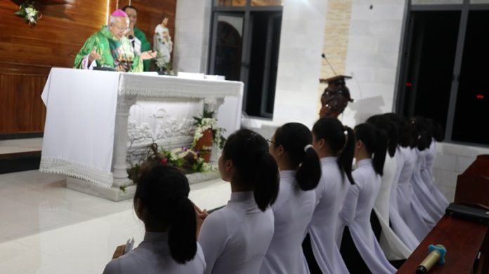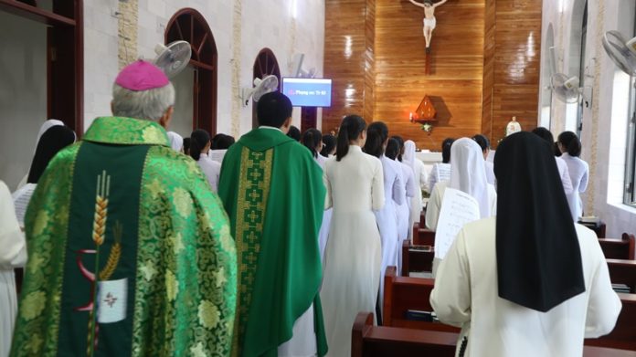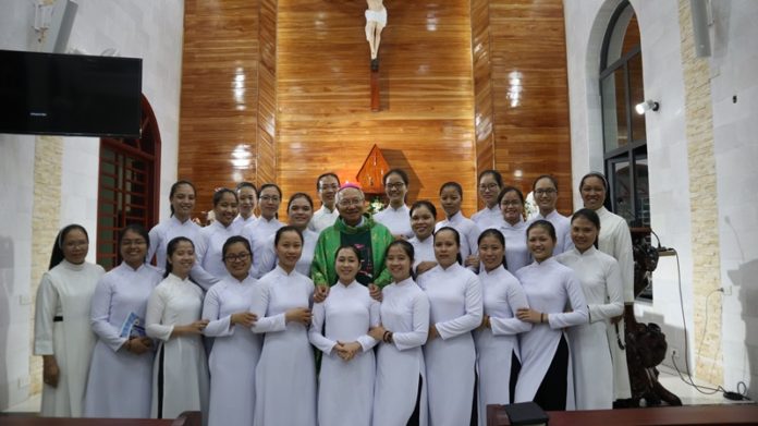 Sau lời nhắn nhủ đầy yêu thương của Đức Cha là nghi thức gia nhập Thỉnh Viện của 11 chị em.