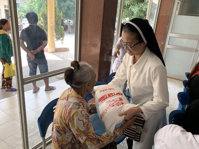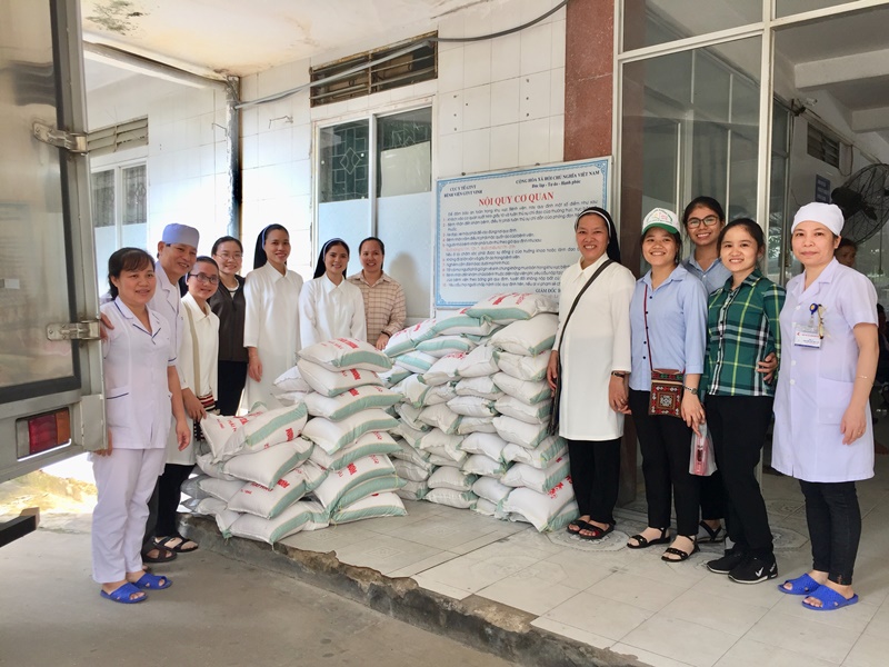 8h30 ngày 26-9-2019 các ‘nhân viên thiện nguyện’ của Hiệp Hội Đa Minh Tin Mừng gồm có dì Bề Trên, các chị học viện và một số chị em thỉnh sinh 2 đã lên đường đến phát gạo cho các bệnh nhân thận ở bệnh viện Giao Thông. Chương trình “Gạo Hồng Ân” do Hội Hồng Ân giúp chủ yếu cho những người cao tuổi, neo đơn, nghèo khó. Tuy nhiên, vì nhìn thấy thực trạng hết sức ngặt nghèo của những bệnh nhân thận, các chị em đã xin một số suất trong tổng số 100 suất giúp cho họ.