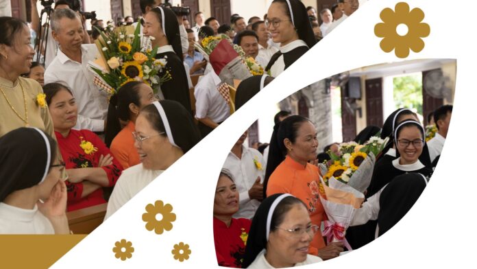 Những bó hoa tươi thắm, lời chúc mừng của mọi người được gửi tới Hiệp Hội, Đức cha Phaolô và các tân khấn sinh. Đặc biệt là những tấm lòng chân thành của những người con và của gia đình Hiệp hội muốn gửi trao đến quý ông bà cố là những người đã quảng đại dâng hiến người con yêu quý của mình cho Thiên Chúa trong linh đạo của Hiệp hội.
