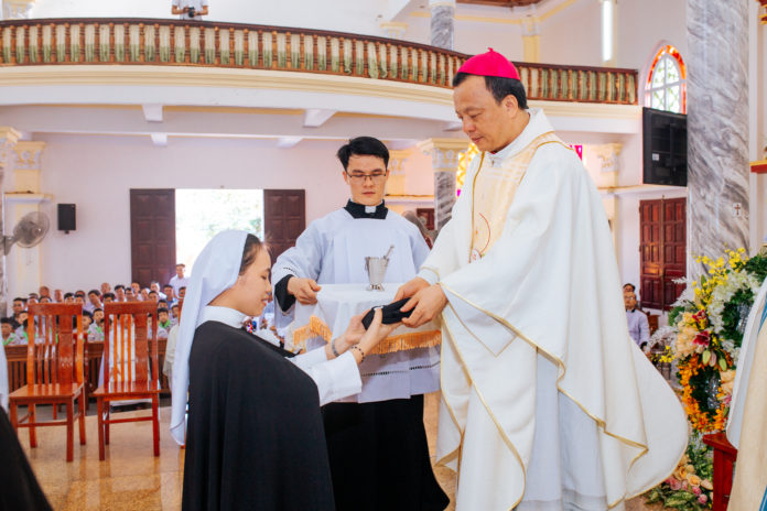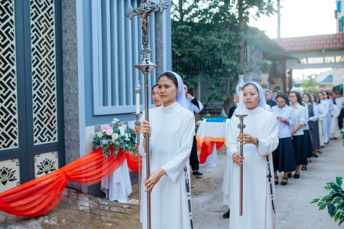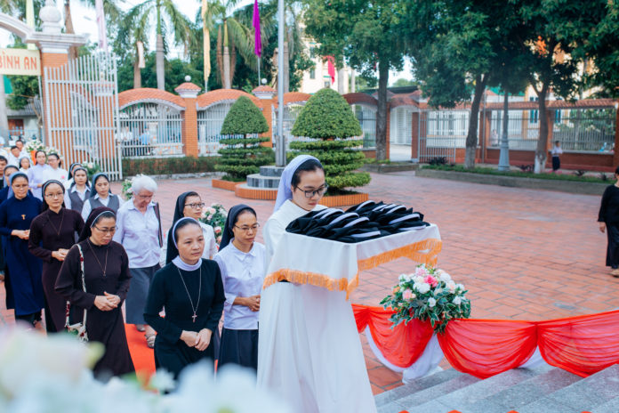 Trước giờ nhập lễ trong giờ phút long trọng và linh thiêng, quý chị những người con yêu dấu của gia đình được cha mẹ song hành bước lên đền thánh, tiến dâng cho Thiên Chúa như của lễ dâng về Ngài qua lời tuyên khấn. Kể từ nay, người con yêu dấu của gia đình sẽ không còn là của riêng gia đình mà còn thuộc về gia đình nhà Chúa, sẽ mang lấy trách nhiệm lo lắng và thi hành thánh ý Chúa.