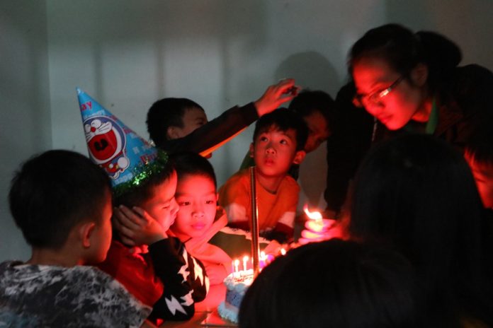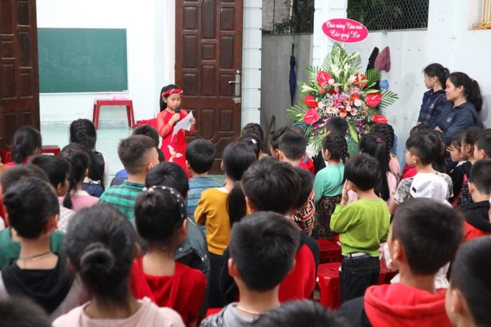 5 giờ 30, các cháu học sinh với khuôn mặt ngây thơ trong trắng, khoác trên mình những chiếc váy đầm xinh xắn đủ màu sắc tươi tắn, nô nức ùa về khuôn viên nhà trường, quây quần bên nhau dùng bữa ăn tối cuối cùng trong năm cũ âm lịch 2018.