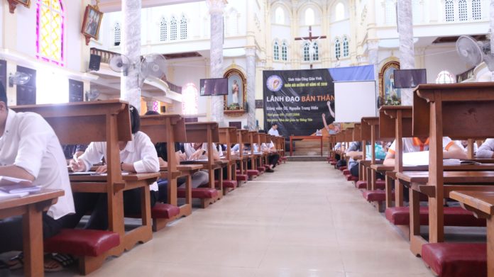 Khóa học “LÃNH ĐẠO BẢN THÂN” năm nay theo dự định lúc ban đầu, được tổ chức cho thế hệ trẻ của Hiệp Hội Đa Minh Tin Mừng, nhưng vì lịch dạy khắp nơi đã kín, không còn thời gian riêng cho sinh viên nên các bạn sinh viên đã được mời học chung với chị em Thỉnh sinh. Tổng số học viên trong khóa học 4 ngày (ngày 9/7 – 12/7/ 2018) là 80.