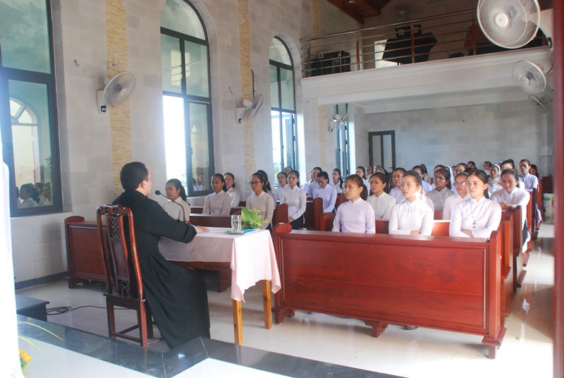 “Học Hỏi Các Nhân Đức Của Mẹ”  là chủ đề chia sẻ  của Cha Gioan Baotixita cho toàn thể chị em trong cộng đoàn vào lúc  15 giờ 30. Nói đến nhân đức của Đức Mẹ thì không kể xiết, Ngài chỉ nêu lên những nhân đức có liên quan cách cụ thể đến sự kiện Mẹ đi thăm bà Elisabeth đó là lòng KHIÊM NHƯỜNG và TÌNH YÊU THƯƠNG của Mẹ Maria qua cách nói dí dỏm, đơn sơ nhưng chất chứa những bài học quý giá. Ngài mời gọi chị em hãy có trái tim thương người, hãy sống một cuộc sống có ý nghĩa qua việc phục vụ và khiêm tốn ẩn mình như Mẹ.