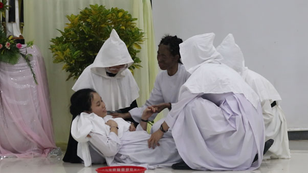 Niềm vui ấy còn được mọi người chia sẻ trong bữa tiệc ấm tình gia đình. Hơn thế nữa, niềm vui và hạnh phúc ấy được tròn đầy viên mãn hơn khi đại gia đình cùng quây quần bên nhau trong đêm diễn nguyện với chủ đề: Martin – Tình Khúc Đức Ái. Với những màn biểu diễn “cây nhà lá vườn” của các chị em đến từ các khối huấn luyện đã tạo thêm bầu khí sinh động cũng như những nụ cười giòn dã cho tất cả mọi người tham dự. Đặc biệt hơn nữa là chỉ với chỉ 30 phút, một tiểu phẩm đã phần nào đó họa lại những nét chính về cuộc đời của Thánh Martin De Porres do các nghệ sĩ không chuyên đến từ quý chị học viện, đã để lại nhiều ấn tượng, sự rung cảm cho tất cả chị em mẫu gương sáng ngời của Thánh nhân về lòng yêu mến Thiên Chúa và tình yêu thương đức ái tha thiết đối với tha nhân.