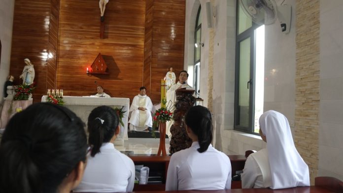 Vào lúc 5 giờ 30, Thánh lễ diễn ra long trọng và sốt sắng do Cha Linh Hướng Gioan Baotixita Hoàng Xuân Lập chủ tế. Đồng tế với ngài có cha giáo Giuse Nguyễn Văn Qúy, O.P., cha Giuse Nguyễn Văn Danh, Bề Trên cộng đoàn Thừa Sai Các Thánh Tông Đồ tại Vinh cùng quý ân nhân và các chị em.