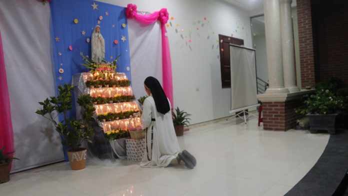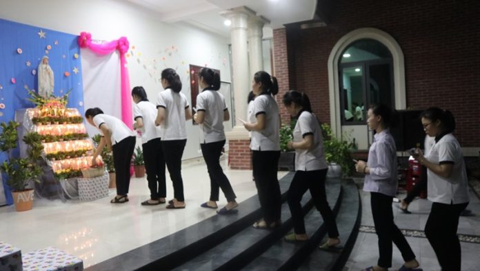 Tình yêu thương, sự hiệp nhất của toàn thể mọi người đang hiện diện cũng được thể hiện qua từng lời cầu nguyện đơn sơ, được viết lên nơi những cánh thiệp xinh xắn dâng lên Mẹ Maria yêu dấu. Một sự linh thiêng, trầm lắng dưới màn đêm,