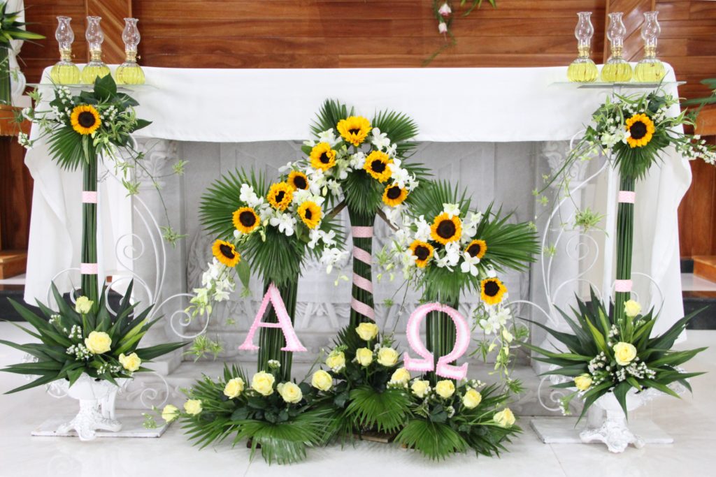 Trang chủ » Văn hóa » Cắm hoa Phụng vụ » Mẫu cắm hoa phụng vụ – Bàn thờ – Mùa Phục SinhMẫu cắm hoa phụng vụ – Bàn thờ – Mùa Phục Sinh 3775 lượt xem 9 Tháng 4, 2021 Mẫu hoa bàn thờ Mẫu hoa kính Thánh GiuseMẫu hoa bàn kính Đức Mẹ và Thánh Đa MinhMẫu hoa nhà tạmMẫu hoa nến phục SinhMẫu hoa bàn đọc sách.Hình ảnh BTT.