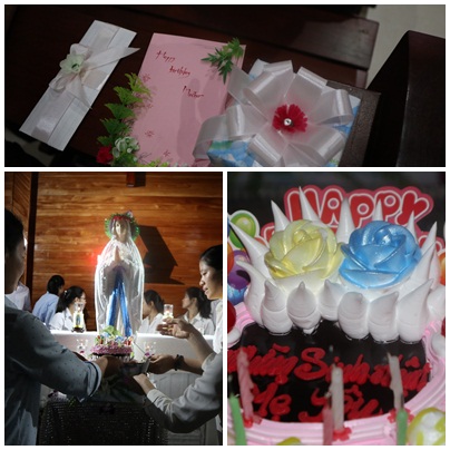 Hòa chung niềm vui của toàn thể Giáo hội mừng Kính lễ sinh  nhật  Đức Maria, các thành viên gia đình Tập viện và Tiền Tập viện của Hiệp hội Đaminh Tin Mừng cùng nhau xum họp và hân hoan tổ chức bữa tiệc mừng kính sinh nhật của Mẹ.