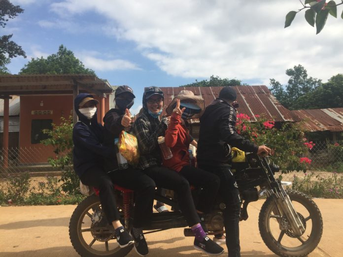 Thật khác với những vùng quê tôi đã sống và từng đến, mọi người ở đây đi làm vào lúc 9h00, cái giờ mà ở nơi khác là lúc sắp kết thúc công việc của một buổi sáng. Chị em chúng tôi trên hành trình lên rẫy với một chiếc xe máy khá độc đáo, có thể chở cùng lúc tới 5 – 6 người. Những con đường ngoằn ngoèo, lúc lượn lên, lúc vòng xuống, những con dốc cao và hẹp dường như làm cho chiếc xe máy chở chị em chúng tôi có vẻ ì ạch hơn mọi hôm. Dù đường hẹp và khúc khuỷu nhưng dưới bàn tay lái lão luyện của A Bao, chiếc xe cứ vẫn chạy bon bon. Có những chỗ đường quá xóc, dường như muốn bật ra khỏi xe, nỗi sợ hãi hiện lên trên khuôn mặt của hai chị em, mắt không còn dám nhìn, miệng thì lẩm bẩm những lời kinh xin Chúa chúc lành cho được bình an. Đi qua ngọn núi chiếc xe máy dừng lại, tôi thầm tạ ơn Chúa đã giữ gìn và vui hơn vì tưởng đã tới rẫy của chú A Bao. Tuy nhiên, cuộc hành trình chưa dừng lại ở đó, vì con đường phía trước chạy xe chắc không dành cho những người phụ nữ “chân yếu tay mềm” nên phải đỗ tạm xe và tiếp tục đi bộ tầm 3km nữa. Đi được nửa đoạn đường thì chú A Bao sau khi đưa vợ cùng con đến nơi tiếp tục quay lại đón chị em chúng tôi. Với đôi chân khá mệt khi leo núi, ngồi trên chiếc xe tôi vui khẽ nở nụ cười vì chiếc xe làm được mọi việc, nó như cái trụ cột để giúp mọi gia đình ở nơi đây làm kinh tế.