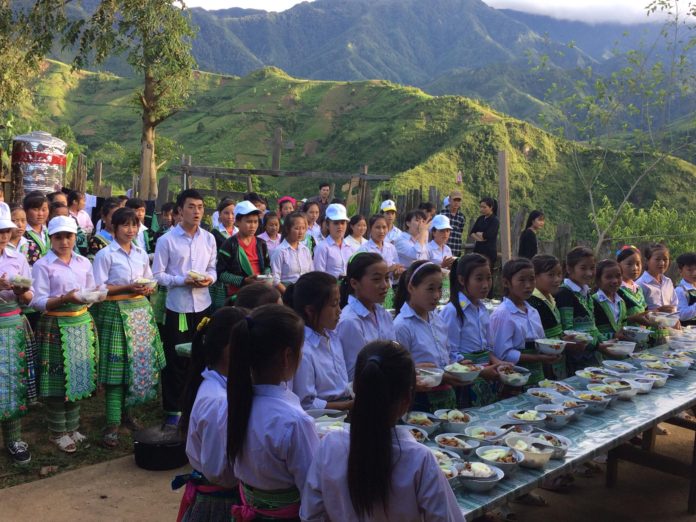 Đến 17 giờ chiều, mọi người quây quần bên nhau dùng bữa cơm đơn sơ giản dị đậm đà hương vị H’mông.