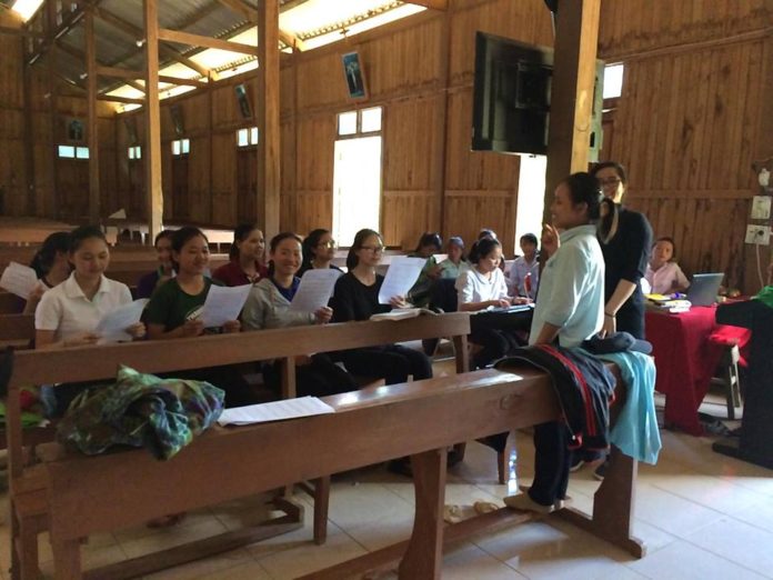 Đúng 11 giờ ngày 29/6/2018, chị em tập trung đầy đủ tại nhà thờ giáo xứ, tay bắt mặt mừng sau những ngày xa cách. Các chị em, mỗi người mỗi việc, người cắm hoa, , người bắt nhịp, đánh đàn, người nội trợ… Ai ai cũng hăng say hết mình chuẩn bị thật chu đáo cho ngày lễ và buổi diễn văn nghệ.