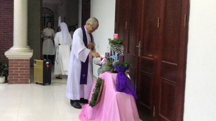 Sau lời chia sẻ của cha, tiếp đó là nghi thức rước nến tượng trưng Mùa Vọng. Nghi thức diễn ra trang nghiêm và sốt mến với những lời cầu nguyện đơn sơ, chân thành của quý chị em trong hiệp hội dâng lên Thiên Chúa.