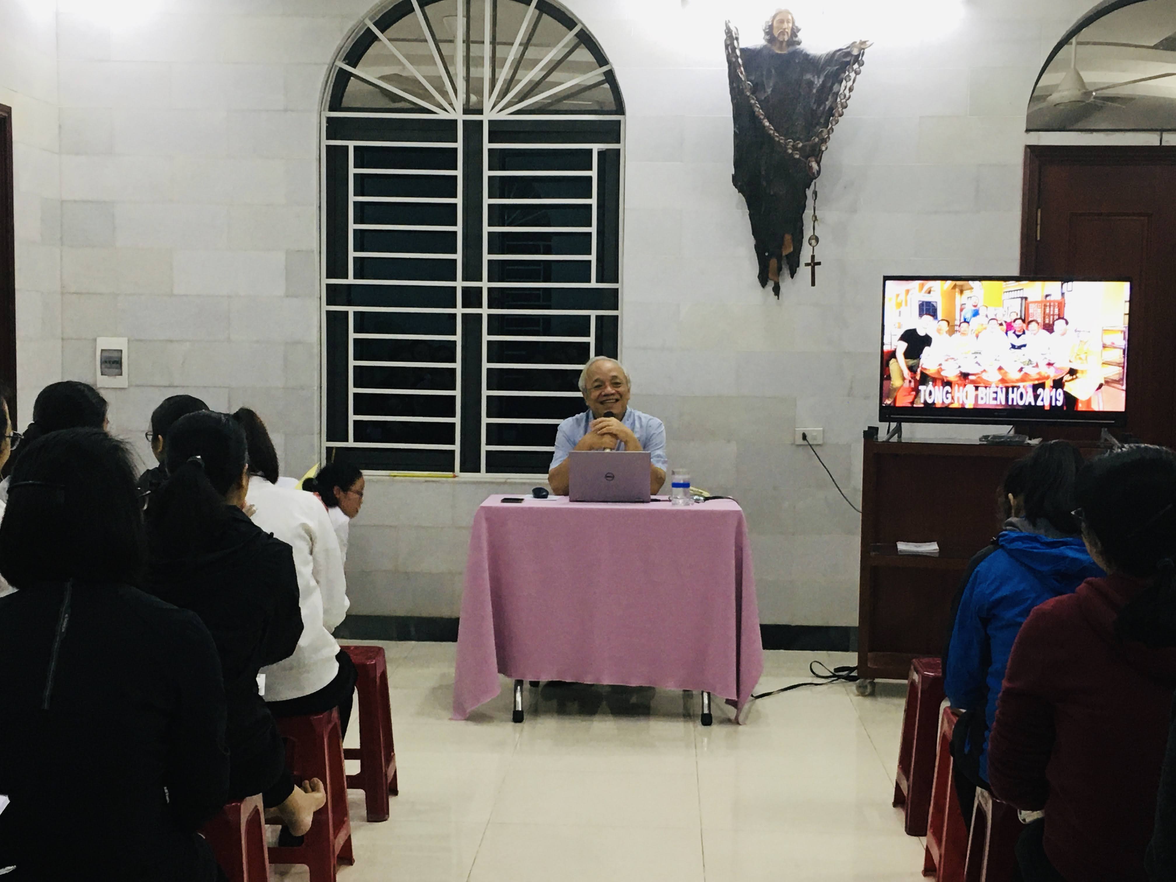 Không chỉ đến thăm hỏi, nhưng vị cha kính yêu còn dành cho chị em hai ngày để chia sẻ về chủ đề: “Lịch sử dòng Đa Minh”, cũng như giúp chị em hiểu rõ hơn về văn kiện “hướng dẫn việc thờ cúng tổ tiên” của HĐGMVN đã được công bố vào ngày 25-26/10/2019 tại Trung tâm Mục vụ TGP Sài Gòn. Bên cạnh đó, cha chia sẻ thêm về những thông tin tư liệu của Tổng hội Biên Hòa 2019, nhằm củng cố kiến thức cho chị em hiểu rõ hơn về quy mô sự gắn kết thiêng liêng, và niềm vinh hạnh tuyệt vời cho tỉnh dòng Đa Minh tại Việt Nam trong ngày kỷ niệm 800 năm thành lập dòng, cũng như dấu ấn 50 năm kỷ niệm dòng Đa Minh Việt Nam được nâng lên là Tỉnh dòng, và sát nhập vào gia đình Đa Minh thế giới.