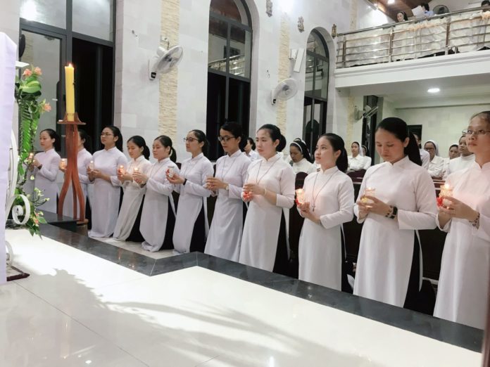 Với những lời thân thưa rõ ràng và dứt khoát trước Thánh Thể. Nguyện xin Chúa Thánh Thần tiếp tục đổ tràn ngọn lửa nhiệt huyết của tuổi trẻ và ơn an bình trên quý chị em, để khi can đảm vâng theo lời mời gọi “Hãy ra khơi”, trước hết là để trải nghiệm và học hỏi, dẫu biết rằng sẽ gặp “Kinh thiên cức địa”[1], nhưng con thuyền của chị em sẽ không bị nhấn chìm giữa giông bão, nhờ dựa vào sức mạnh và sự nâng đỡ của Thánh Thần, bằng đời sống náu ẩn trong Chúa qua thinh lặng cầu nguyện và đối thoại trong tương quan mật thiết. Cầu chúc cho 12 chị em cũng sẽ theo gót chân của “Nhóm Mười Hai” Tông Đồ xưa, dẫu có “Thiên tân vạn khổ”[2] đi chăng nữa thì chị em cũng sẽ luôn “thụ khổ thụ nạn”[3] với một “Khí định thần nhàn”[4] nhé!