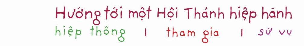 Đường chân ngang của logo với chủ đề: “Hướng tới một Hội Thánh hiệp hành: hiệp thông, tham gia và sứ vụ” chạy từ trái sang phải theo hướng của cuộc hành trình, nhằm tăng cường và củng cố nó, và kết thúc với tiêu đề “Thượng hội đồng 2021 – 2023”, là sự kiện đỉnh cao tổng hợp toàn bộ hành trình.